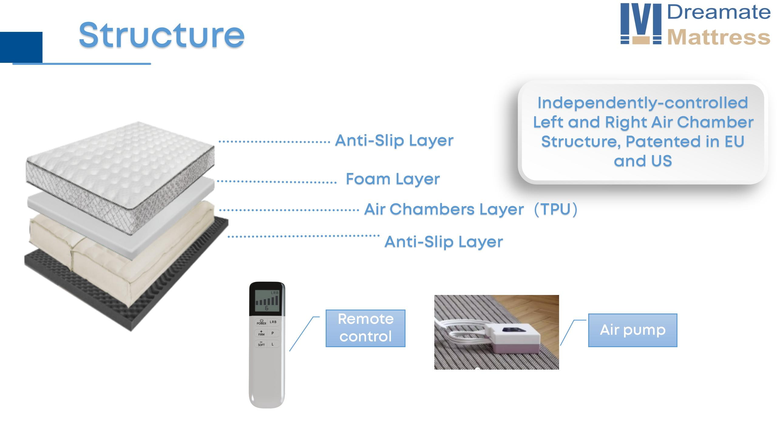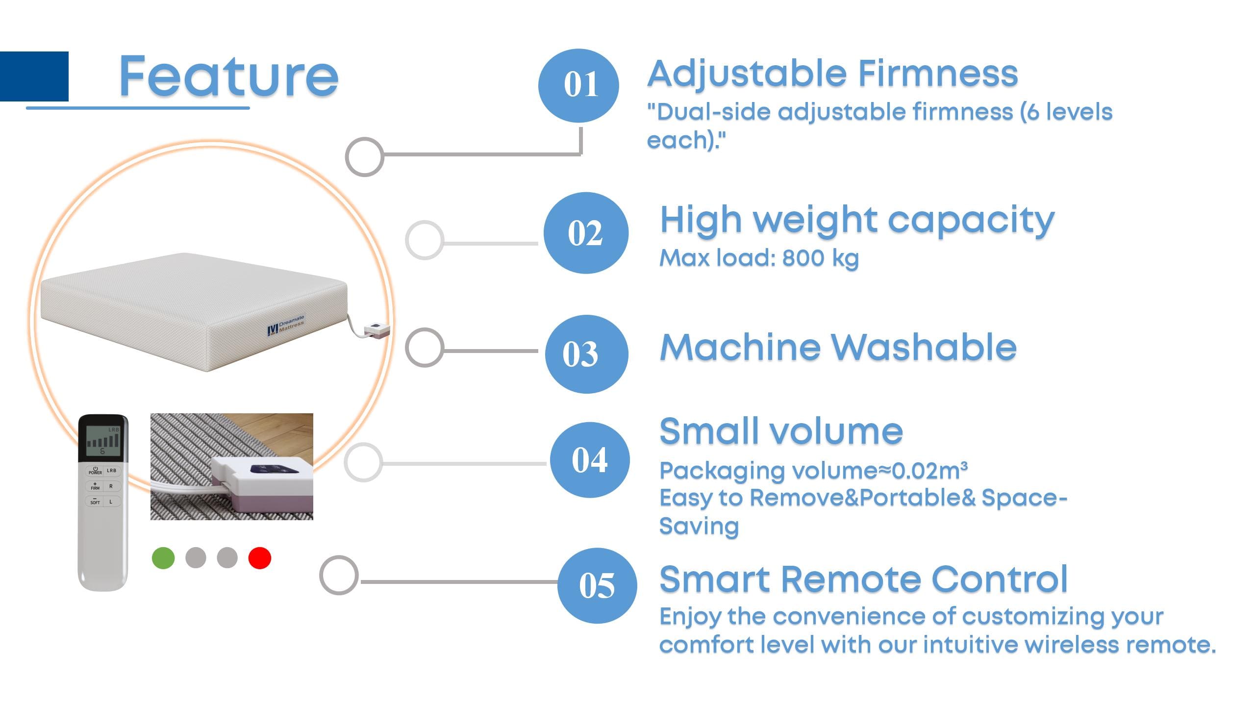 Dreamate mattress combines upgraded premium fabric with independent left-right firmness control for personalized comfort.